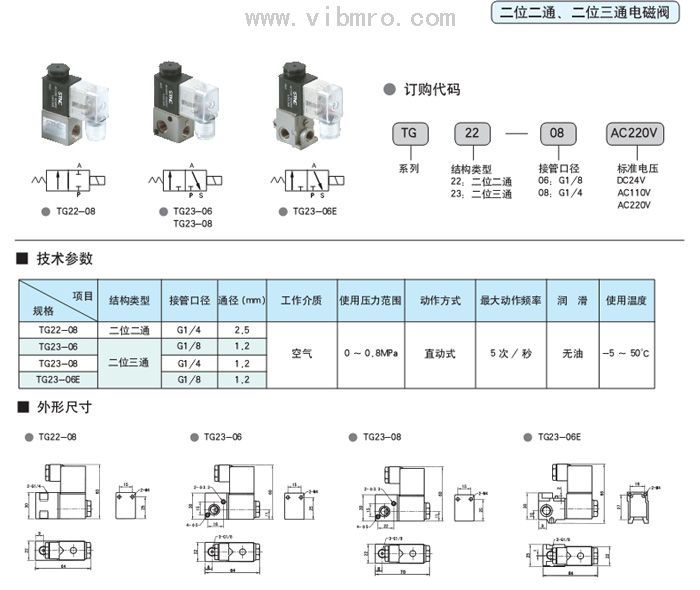 TG2321-08,STNC电磁阀,TG系列电磁阀