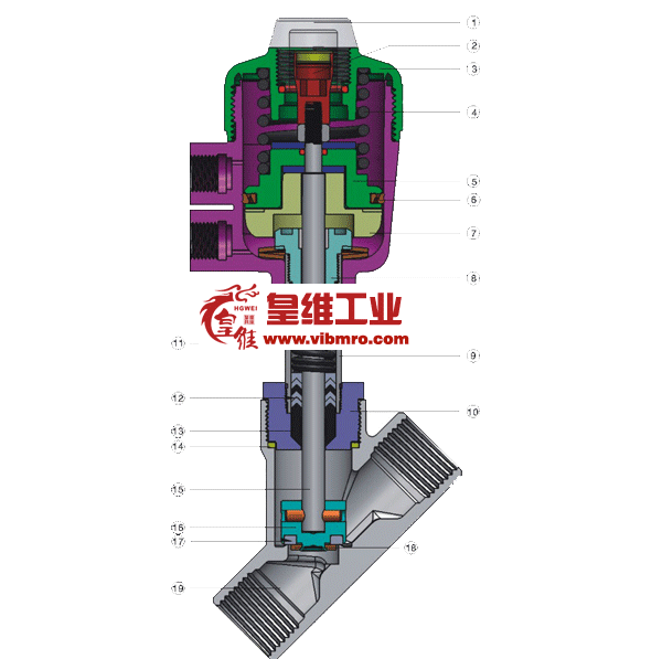 5活塞Piston(PPS) 15活塞杆 Piston rod(CF8M)